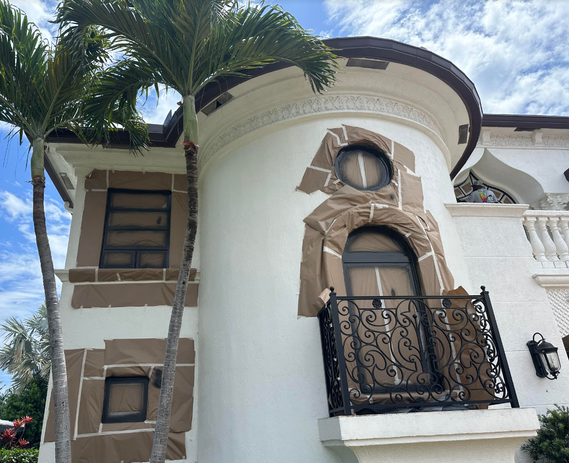 The refinishing of beautiful decorative louvered doors in a residential breezeway using Electrostatic 2605 Coraflon coating paired with a two-part epoxy primer.
